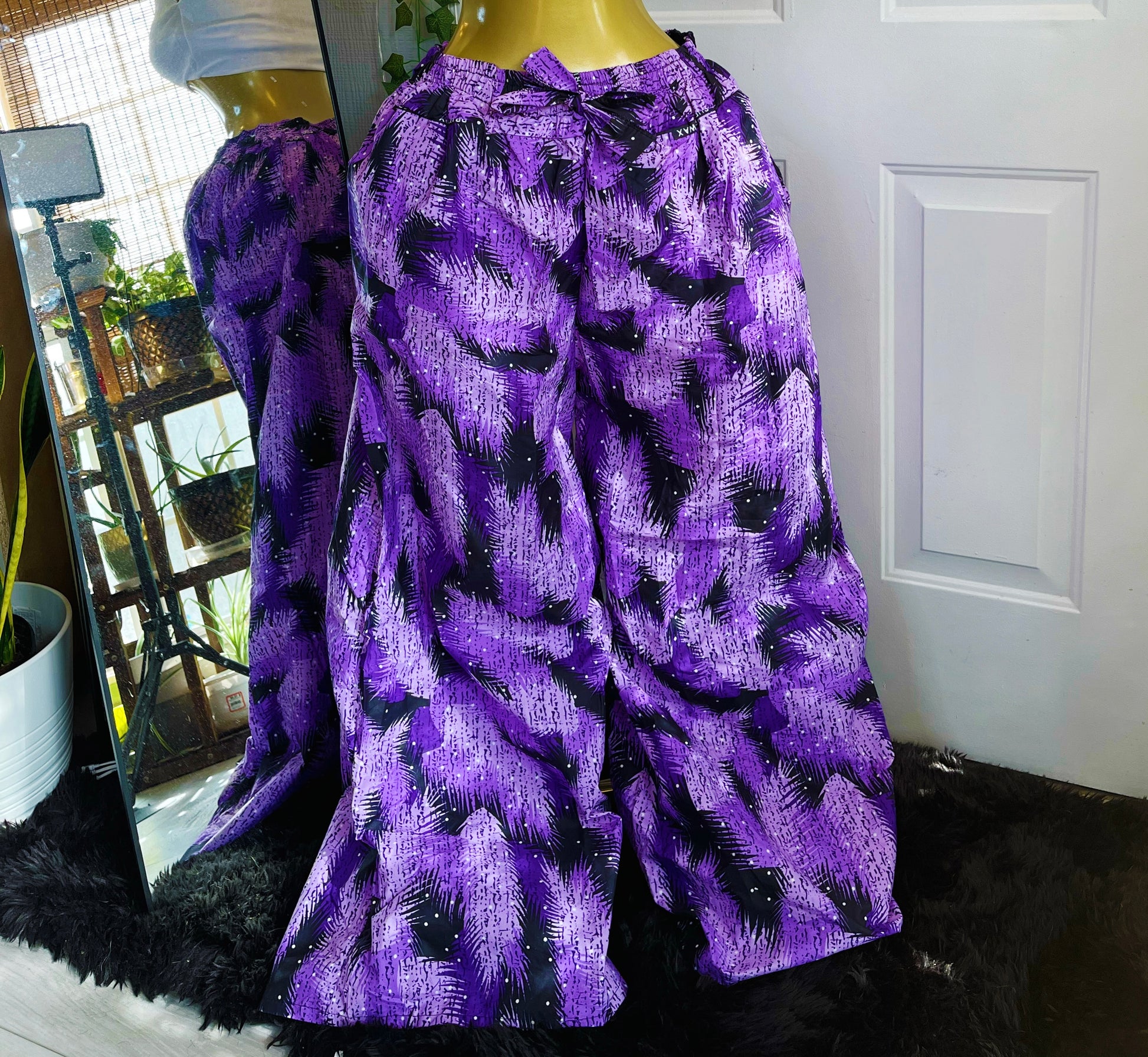 Step into effortless elegance with our Amethyst Drift Pants, designed for the woman who loves comfort without sacrificing style. The rich purple tones blend with soft black strokes, creating a dreamy, artistic pattern that makes every outfit feel intentional.