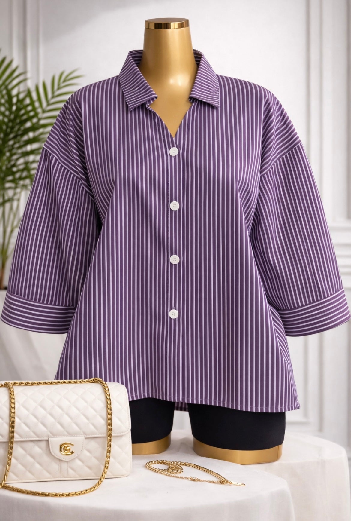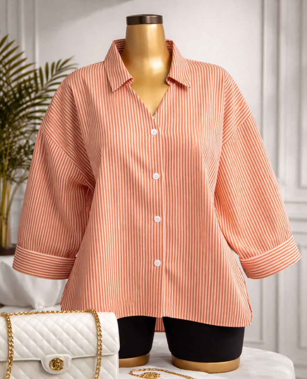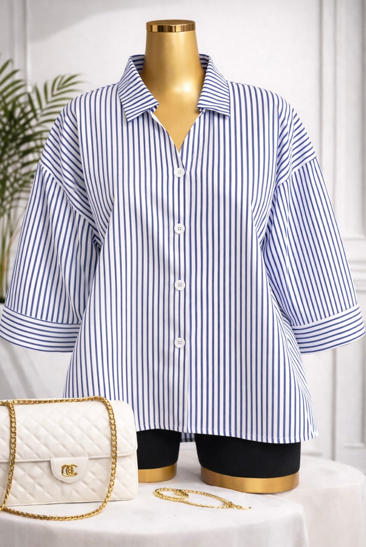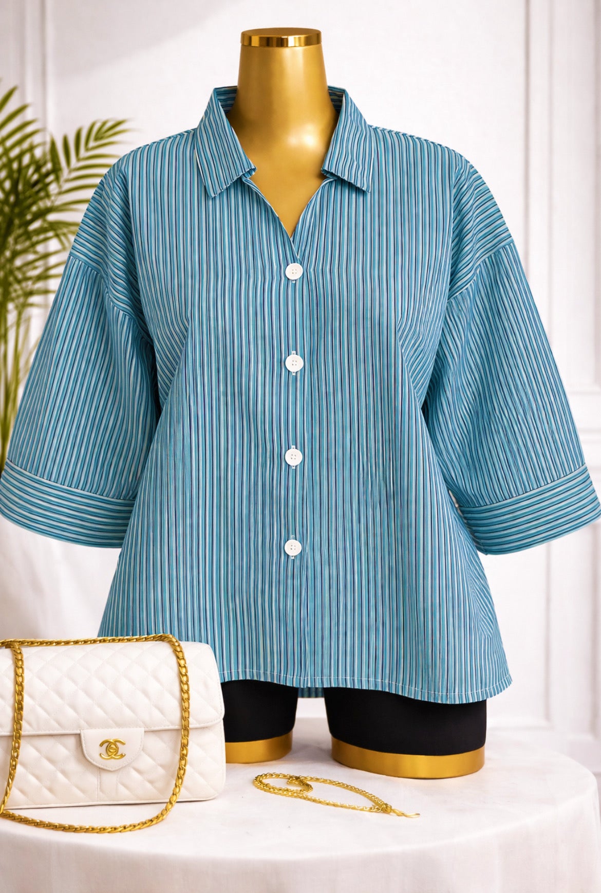 A relaxed button-down designed for effortless styling. Featuring a lightweight feel and vertical stripe detail, this shirt offers an oversized fit that can be worn open, buttoned, or layered for everyday ease.