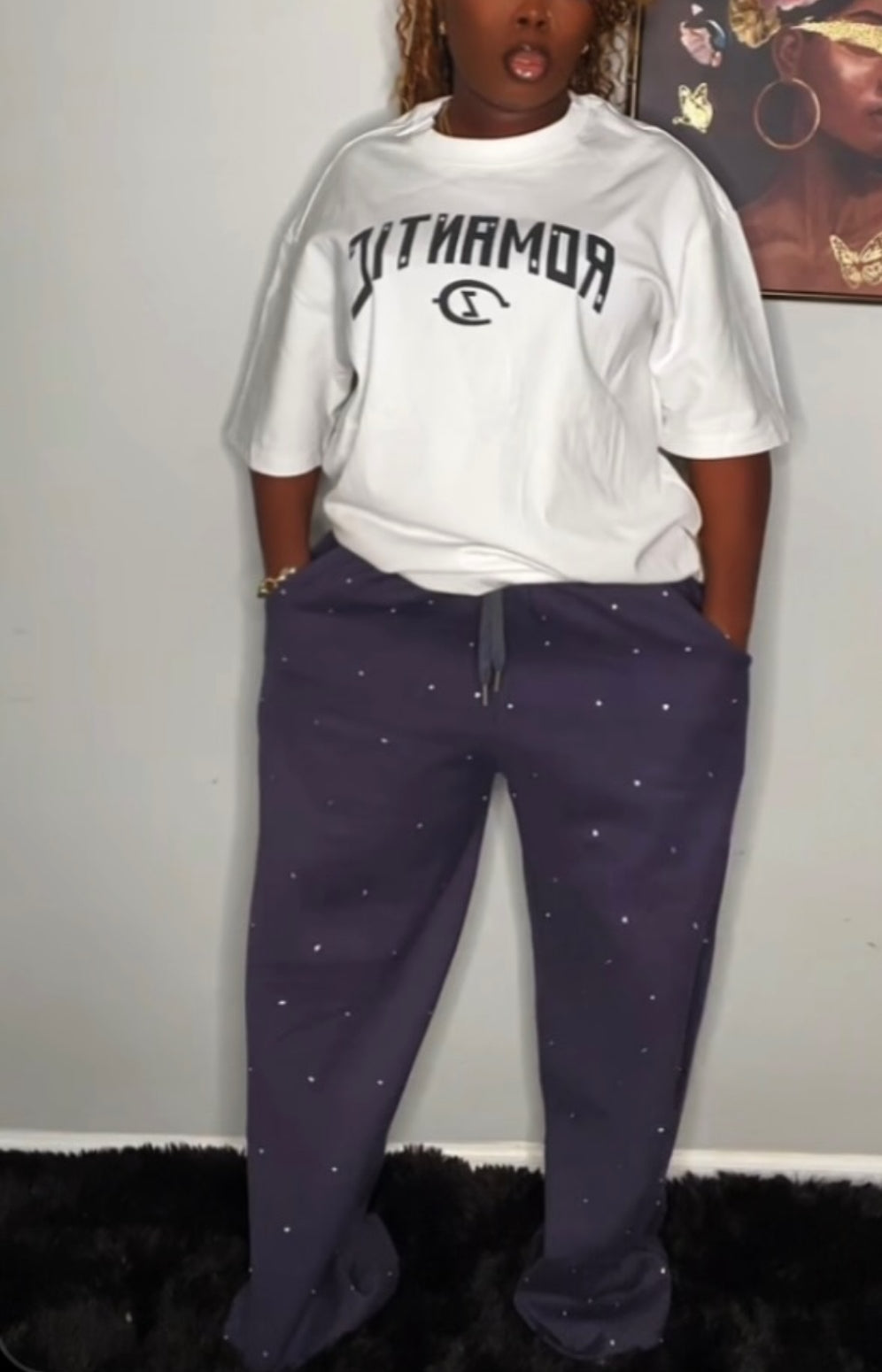Perfect for chill days, airport fits, or stepping out with a little sparkle, these joggers bring soft-girl comfort with a cosmic glow.