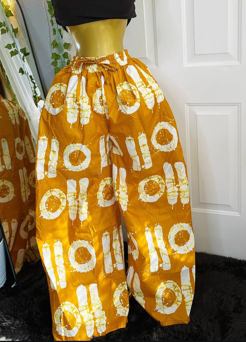 Bright, bold, and beautifully cultural our Crown Kulture Wide-Leg Pants in Golden Sunrise are a statement all on their own.