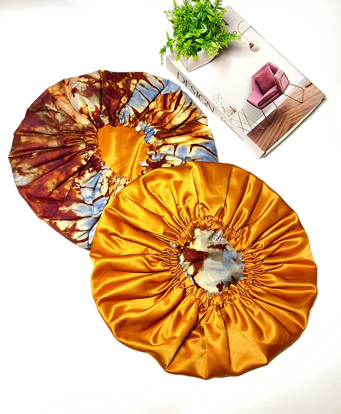 Our Motherland Sunset satin bonnet is a stunning blend of heritage and elegance, inspired by the bold colors of African sunsets and the warmth of home. One side features a radiant golden satin that protects your crown with softness and shine, while the other showcases a rich, earthy tie-dye pattern that reflects culture, artistry, and the beauty of the motherland.