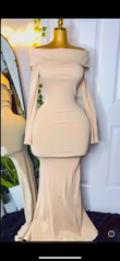 Elegance begins with simplicity and our Nude Serenity Off-Shoulder is the perfect example. This body-hugging masterpiece features a smooth nude fabric that sculpts your curves effortlessly, while the off-shoulder neckline adds a touch of soft, feminine sophistication. The long sleeves and flowing mermaid hem create a graceful silhouette that moves beautifully with every step.