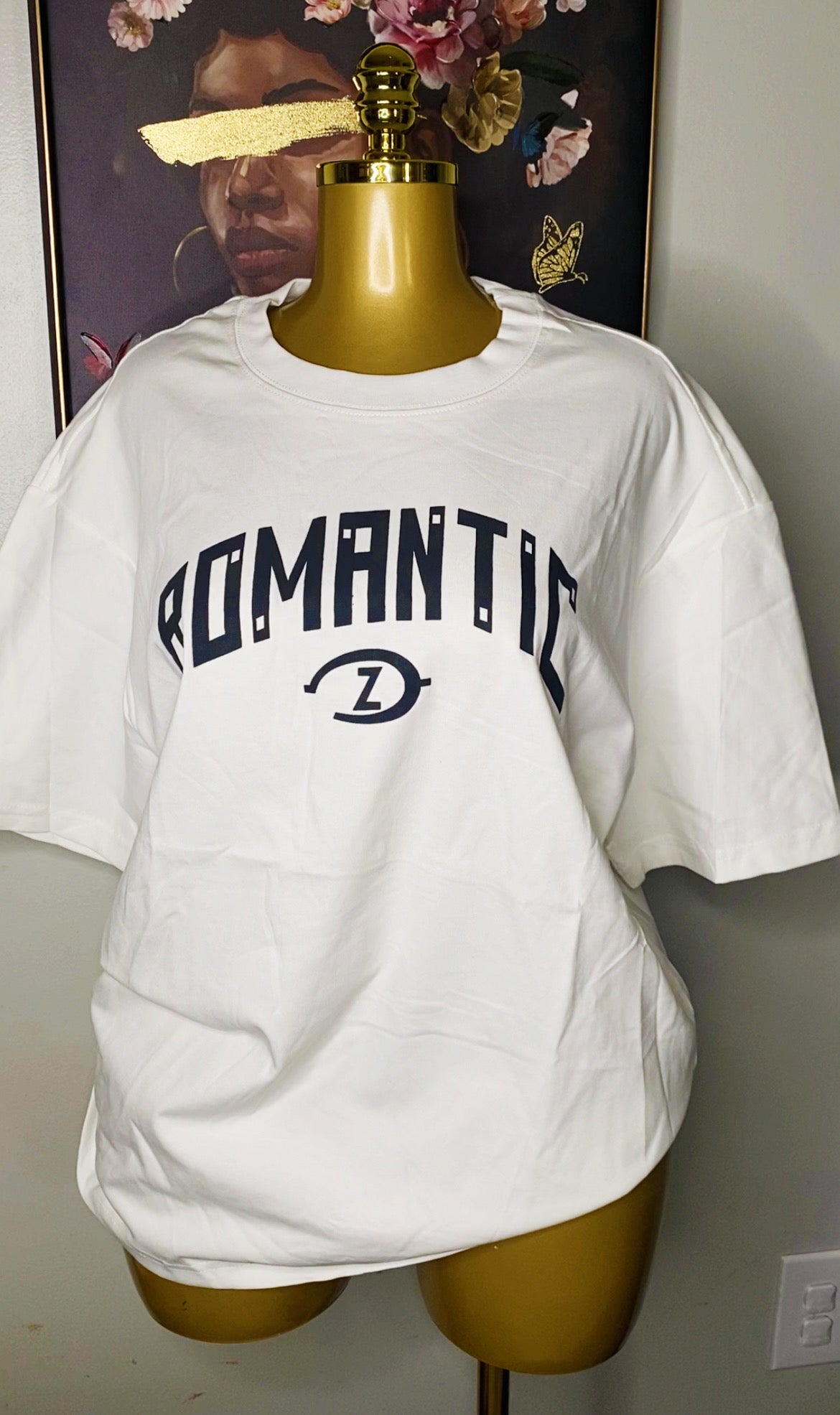 Elevate your everyday style with the Romantic Z Oversized Tee. Designed in a crisp white cotton fabric, this relaxed-fit t-shirt “ROMANTIC” arch graphic across the chest, finished with a minimalist circular “Z” emblem for a modern, streetwear inspired look. The oversized silhouette offers all-day comfort while keeping your outfit effortlessly stylish. Perfect for casual wear, layering, or dressing up with accessories, this tee blends comfort with statement design.