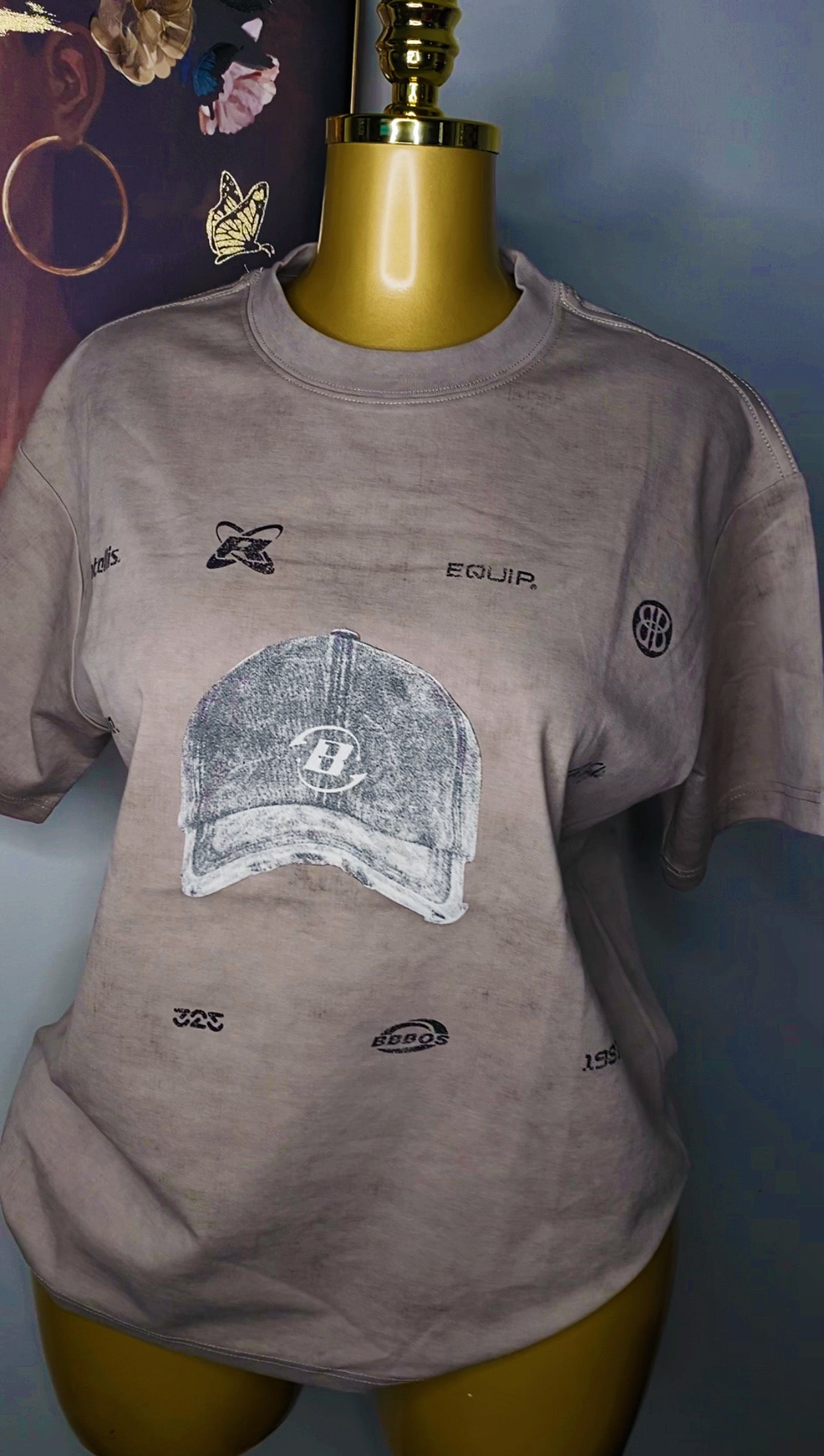 Effortless, edgy, and street-style approved our Street Cap Vintage Tee gives relaxed urban vibes with a soft worn-in look. Designed in a muted taupe wash, this tee features a distressed sketch-style cap graphic and scattered minimal logos, adding that perfectly imperfect vintage feel.