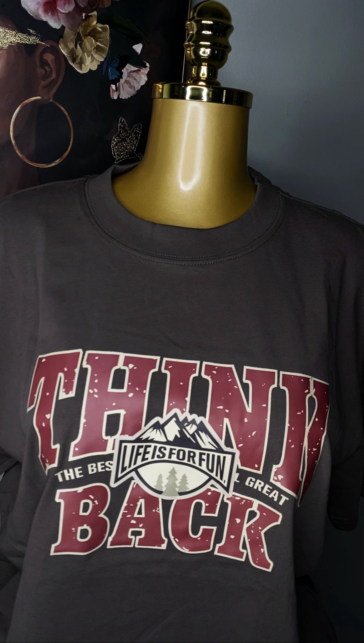 Oversized Casual comfort meets retro charm with our Think Back Vintage Tee. Designed in a soft earthy brown with bold varsity-style lettering, this graphic tee gives effortless “throwback” energy while keeping things modern and wearable.